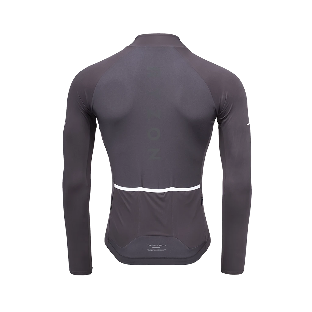 Das Signature Longsleeve Bike Jersey ist dein wärmender, komfortabler Begleiter an milden Tagen. Recycelte Stoffe aus Italien mit 4-Wege-Stretch sorgen für eine enganliegende Passform bei optimaler Bewegungsfreiheit. Die Innenseite des sanften Hauptmaterials besitzt eine offene Struktur, die ein isolierendes Mikroklima erzeugt, um die Körpermitte warm zu halten. Der antimikrobakterielle Rückenstoff ist besonders atmungsaktiv und schnelltrocknend für ein optimales Feuchtigkeitsmanagement, um ein Überhitzen zu verhindern. Sanfte Flatlock-Nähte vermeiden unangenehme Druckpunkte oder Reibungsstellen auf der Haut. Elastische Abschlüsse mit Silikon Grip-Elementen bieten eine hervorragende Passform und festen Sitz. Drei Rückentaschen verstauen deine Utensilien sicher.