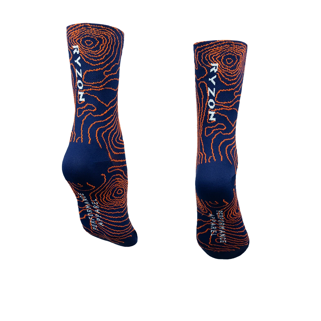 Die hochgeschnittenen Ryzon X Zwift Performance Socks Contour bieten dir eine optimale Passform. Das doppelt gelegte Bündchen nimmt Feuchtigkeit auf und garantiert einen festen Sitz an der Wade. Die dünne Verarbeitung auf der Fußoberseite sorgt für beste Atmungsaktivität. Durch die Verstärkung an Ferse und Fußballen werden empfindliche Stellen nachhaltig geschützt. Die kompressive Verstärkung am Mittelfuß sorgt für einen sicheren Halt im Schuh.